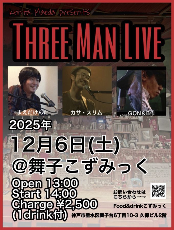 Open 13:00 Start 14:00 Charge 2,500円(1drink付)
