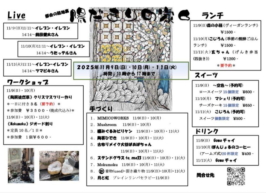 Open 10:30 Start 11:00 Charge 3,000円(1drink付)
